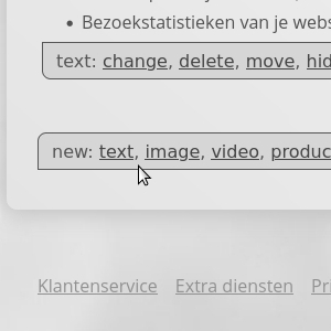Onderaan iedere pagina vind je knoppen om tekstblokken en afbeeldingen of foto's toe te voegen.