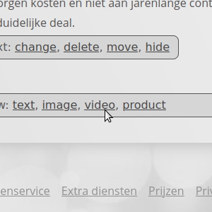 Video's en productknoppen (voor je webshop) kun je pas toevoegen als deze betaalde modules zijn geactiveerd. Neem contact op met Hello Website om meer info te horen over de mogelijkheden of bekijk alvast de prijslijst.